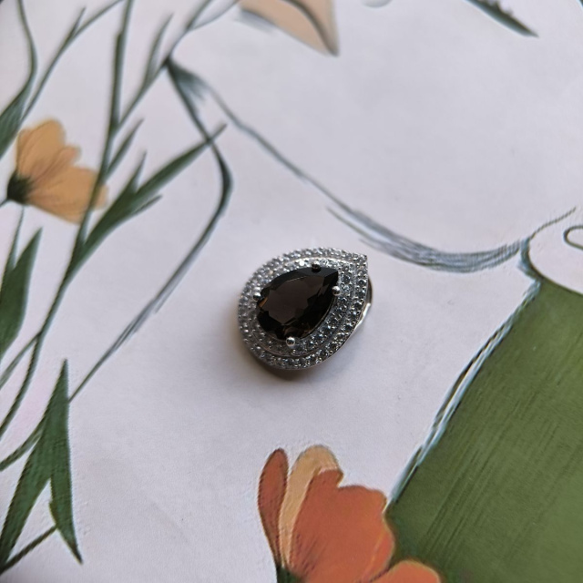 Родированная серебряная подвеска 925 пробы с натуральным раухтопазом (дымчатым кварцем) 2.188ct, фианитами. Родированные украшения дольше сохраняют свое первоначальное состояние, а именно цвет и блеск металла. Все ювелирные изделия представленные на нашем сайте прошли внутренний контроль качества, а также контроль государственной пробирной службой Украины, на всех изделиях стоит соответствующая проба. К каждому ювелирному украшению прилагаются бирка с указанием всех параметров.*Цвета изделий на сайте могут незначительно отличаться от реальных из-за особенностей цветопередачи экрана