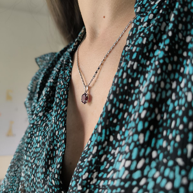 Родированная серебряная подвеска 925 пробы с искусственным гранатом nano 1.975ct. Родированные украшения дольше сохраняют свое первоначальное состояние, а именно цвет и блеск металла. Все ювелирные изделия представленные на нашем сайте прошли внутренний контроль качества, а также контроль государственной пробирной службой Украины, на всех изделиях стоит соответствующая проба. К каждому ювелирному украшению прилагаются бирка с указанием всех параметров.*Цвета изделий на сайте могут незначительно отличаться от реальных из-за особенностей цветопередачи экрана