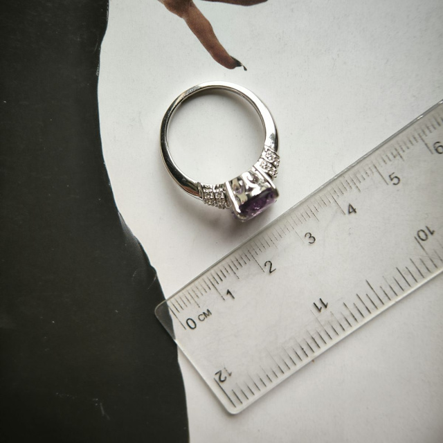 Родированное серебряное кольцо 925 пробы с натуральным аметистом 5.397ct. Родированные украшения дольше сохраняют свое первоначальное состояние, а именно цвет и блеск металла. Все ювелирные изделия представленные на нашем сайте прошли внутренний контроль качества, а также контроль государственной пробирной службой Украины, на всех изделиях стоит соответствующая проба. К каждому ювелирному украшению прилагаются бирка с указанием всех параметров.*Цвета изделий на сайте могут незначительно отличаться от реальных из-за особенностей цветопередачи экрана