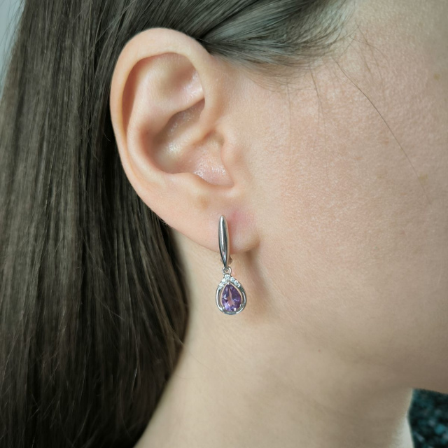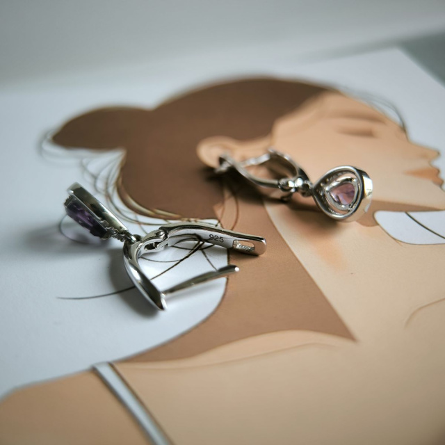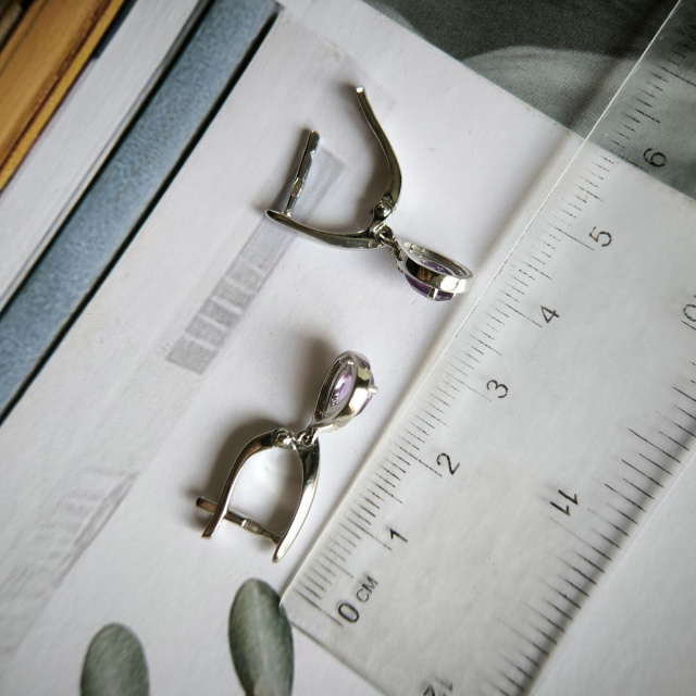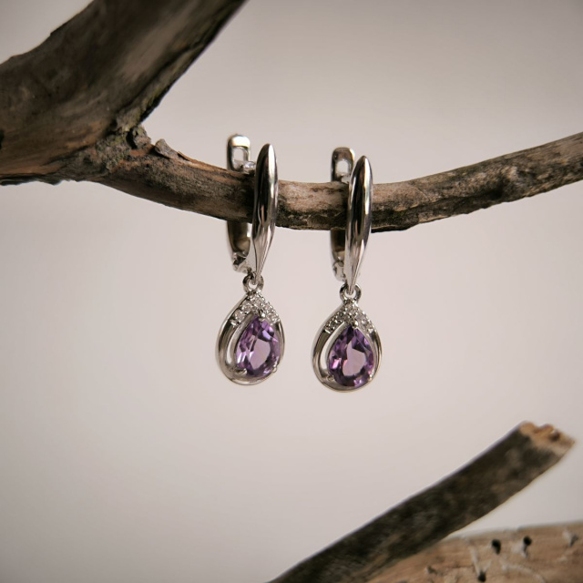 Родированые серебряные серьги 925 пробы с натуральным аметистом 1.276ct. Родированные украшения дольше сохраняют свое первоначальное состояние, а именно цвет и блеск металла. Все ювелирные изделия представленные на нашем сайте прошли внутренний контроль качества, а также контроль государственной пробирной службой Украины, на всех изделиях стоит соответствующая проба. К каждому ювелирному украшению прилагаются бирка с указанием всех параметров.*Цвета изделий на сайте могут незначительно отличаться от реальных из-за особенностей цветопередачи экрана