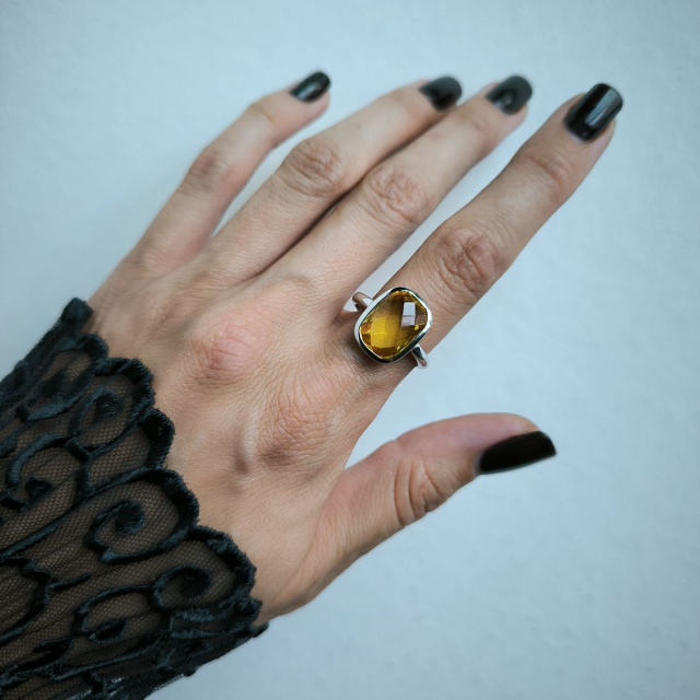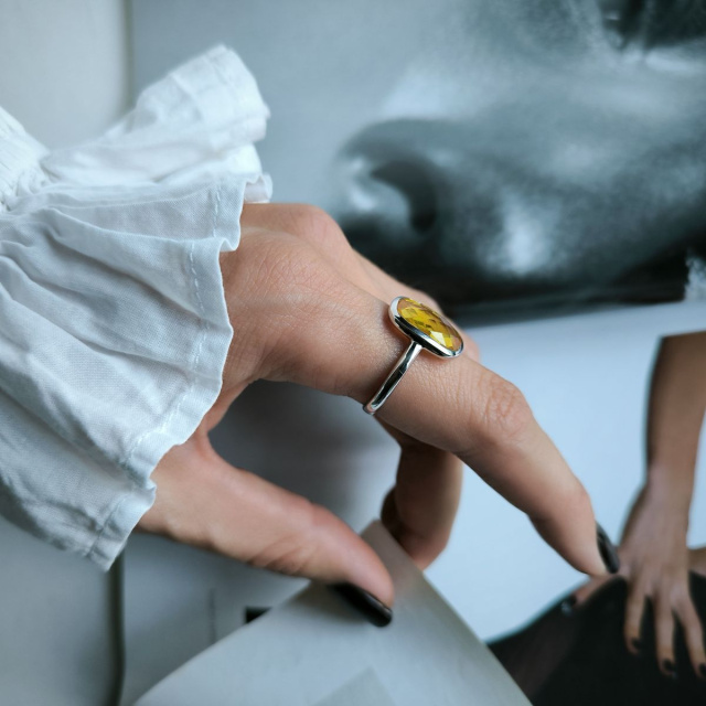 Родированное серебряное кольцо 925 пробы с цитрином nano. Родированные украшения дольше сохраняют свое первоначальное состояние, а именно цвет и блеск металла. Все ювелирные изделия представленные на нашем сайте прошли внутренний контроль качества, а также контроль государственной пробирной службой Украины, на всех изделиях стоит соответствующая проба. К каждому ювелирному украшению прилагаются бирка с указанием всех параметров.*Цвета изделий на сайте могут незначительно отличаться от реальных из-за особенностей цветопередачи экрана